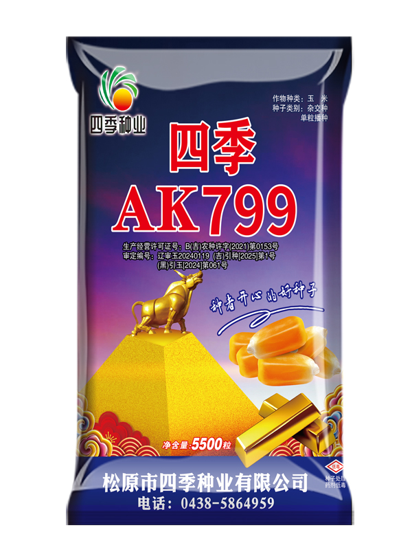 AK799-名门新秀,铁秆耐密高产,稳定性好,抗病,抗倒,果穗一致,无穗腐,宽板粮,容重高,粮质好,好卖粮